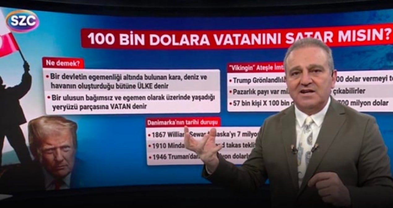 İçinizden Biri Ekrem Açıkel, Trump’ın yeni teklifini canlı yayında anlattı. Açıkel SÖZCÜ TV ekranlarında Grönlandlılara da şu soruyu yöneltti: 100 Bin Dolara Vatanını Satar Mısın?